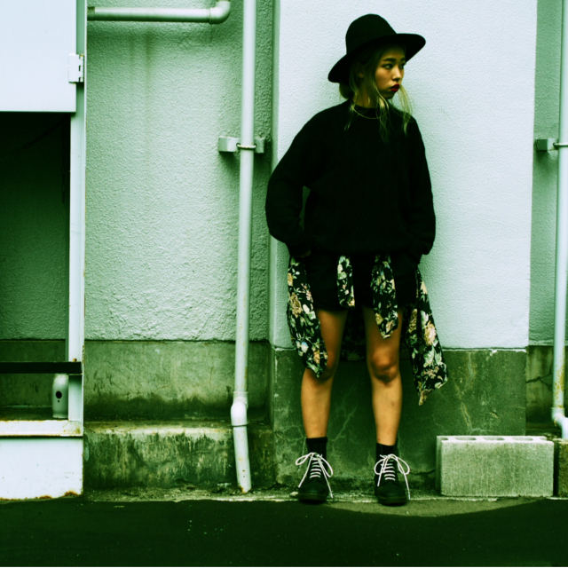 自分らしいオールブラックには花柄をアクセントに! #ootd