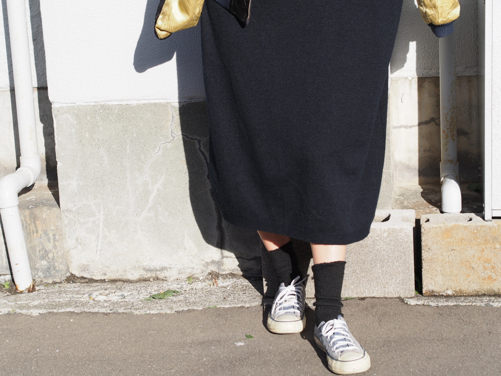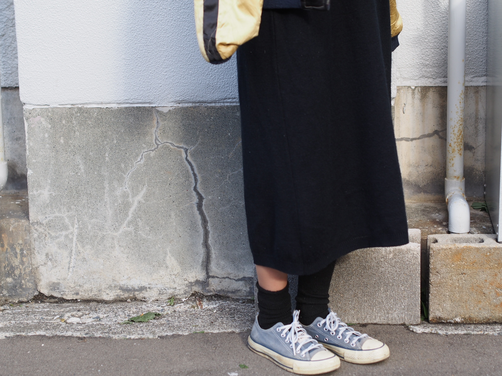 足元はボロボロコンバースで気取らずに