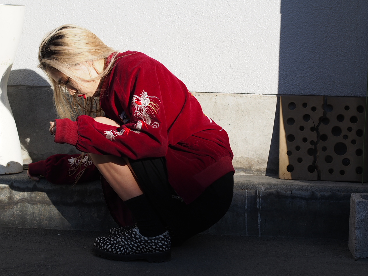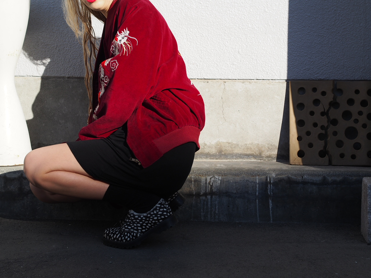 ボルドーのスカジャンをメインにスタイリング!