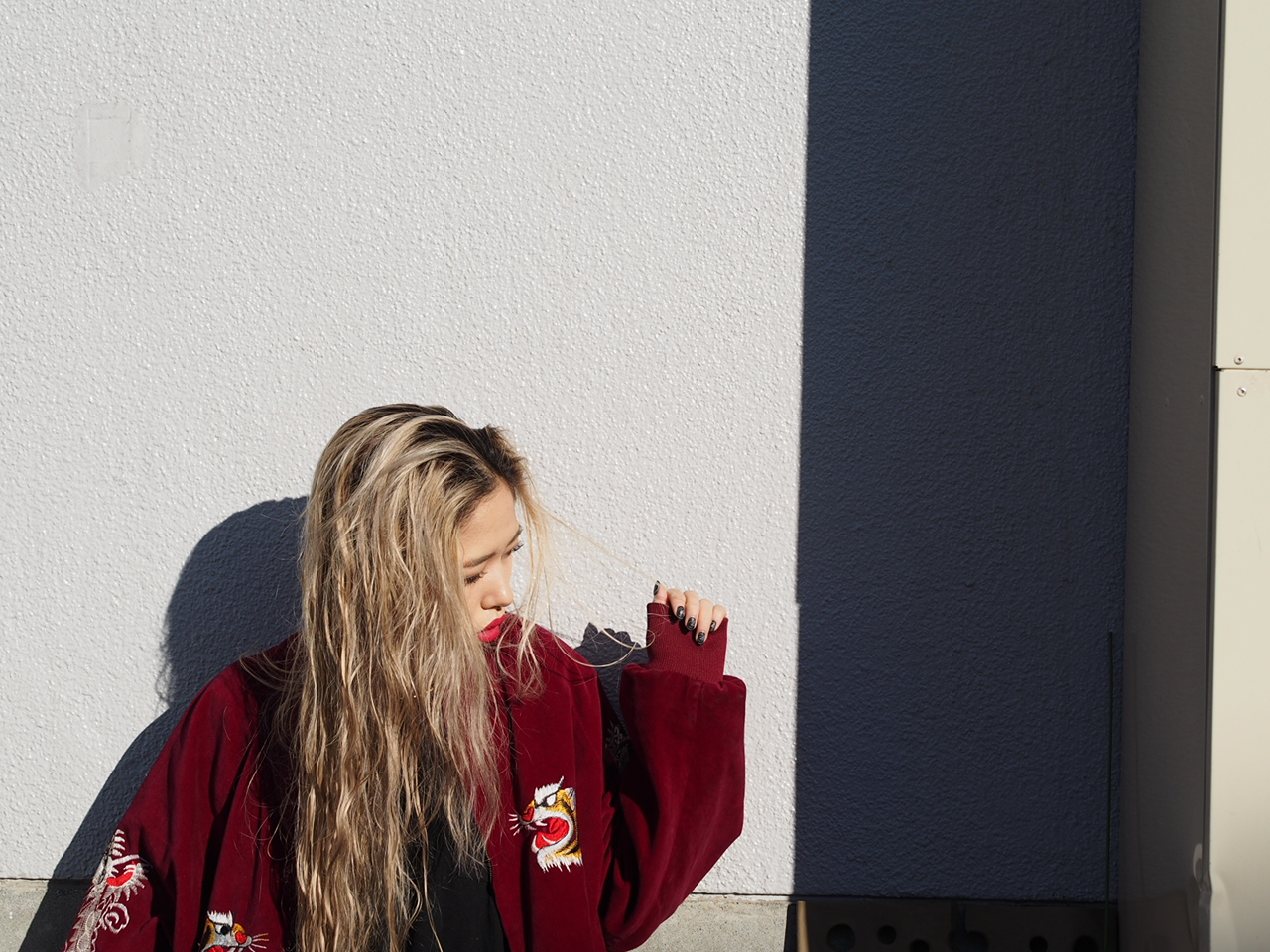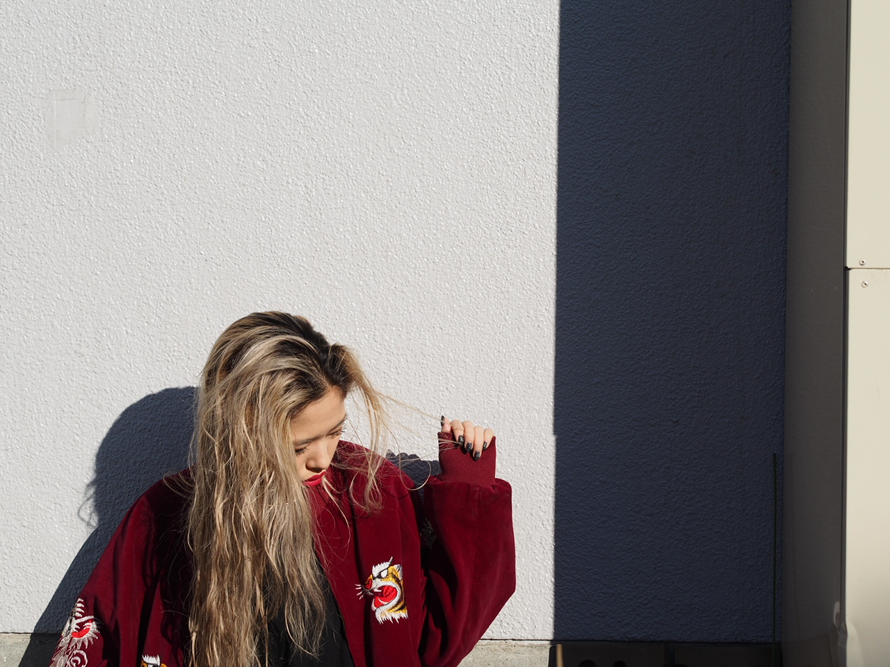 スカジャンがボルドーなので、
