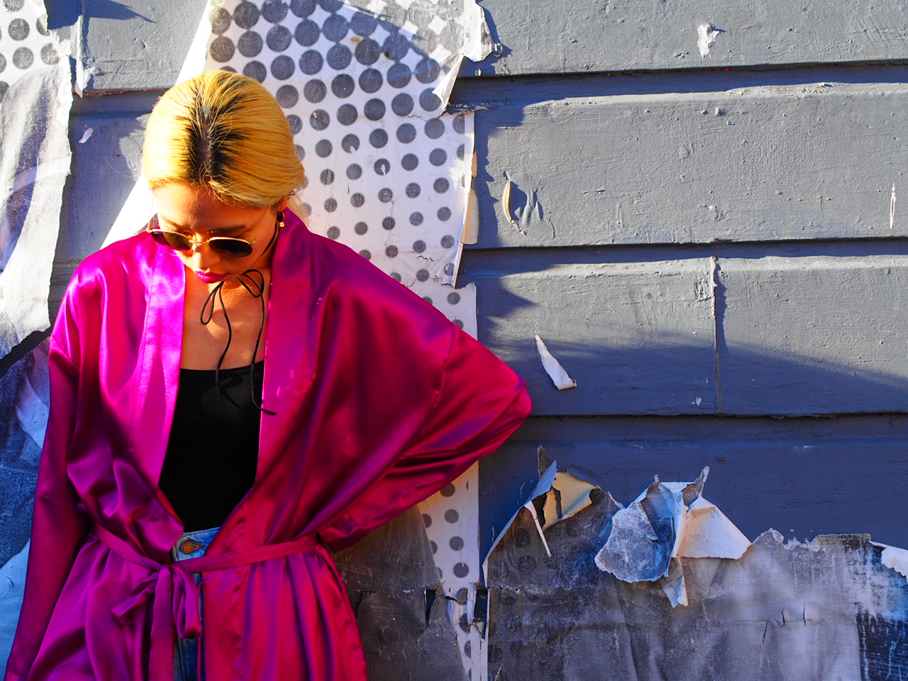 今回は鮮やかな発色のガウンをカジュアルダウンして
