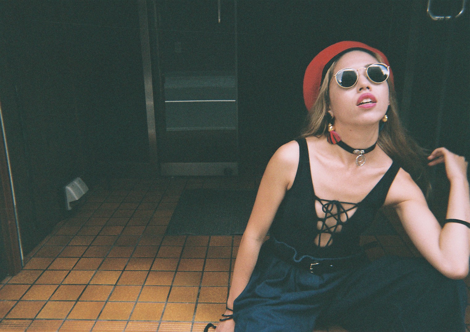 チョーカーやサングラスでスパイスを効かせて辛口に