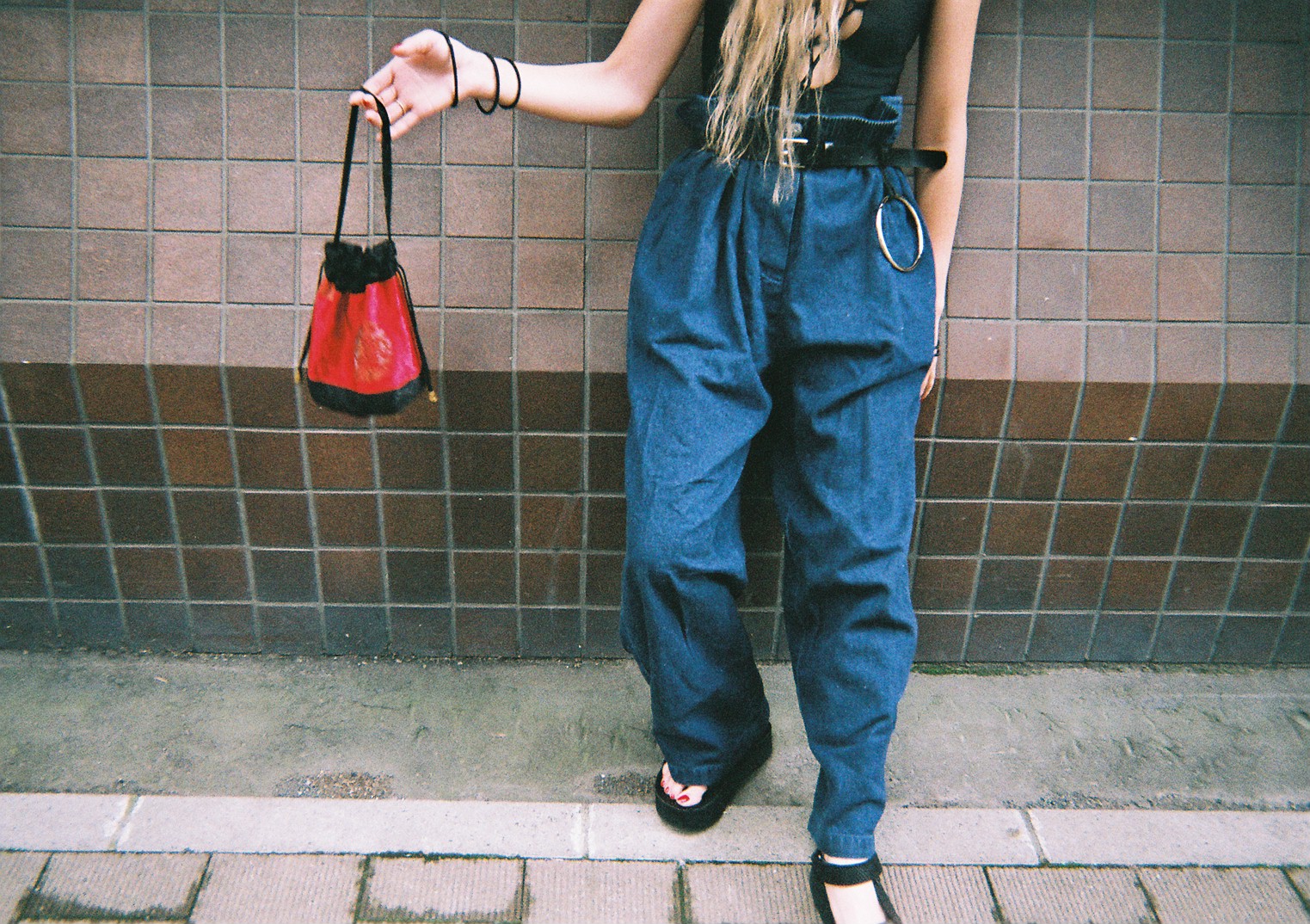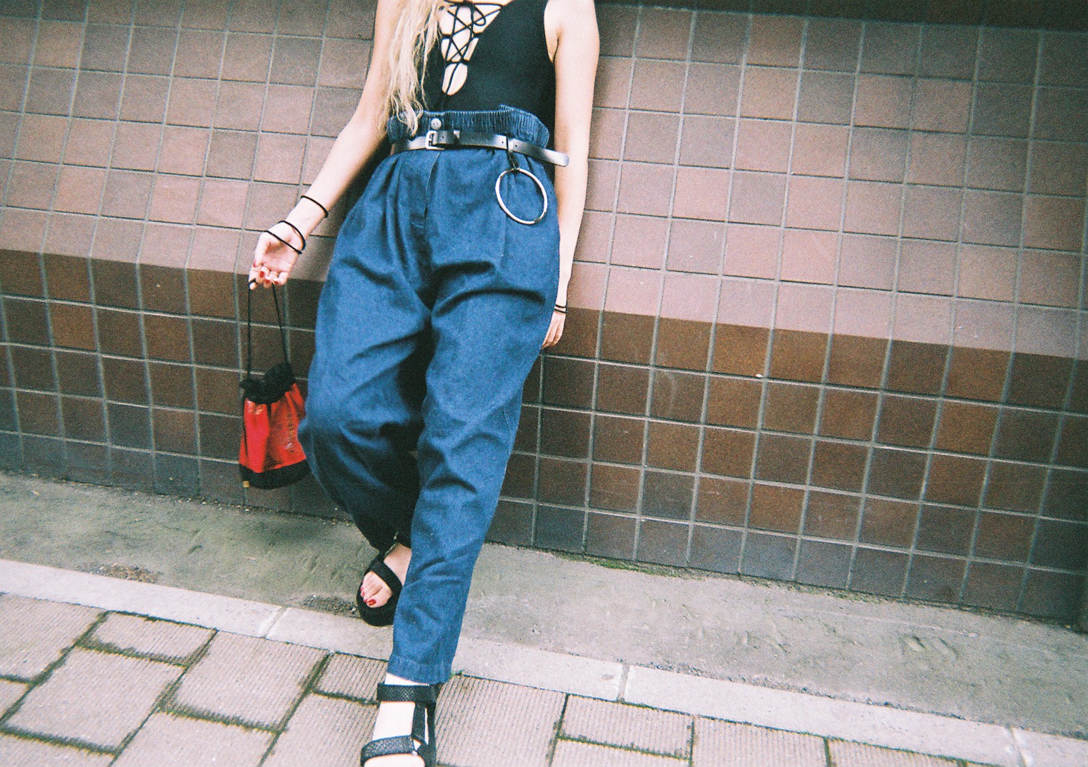 スイムウェアのタイトさと極太デニムのシルエットが絶妙に合うので