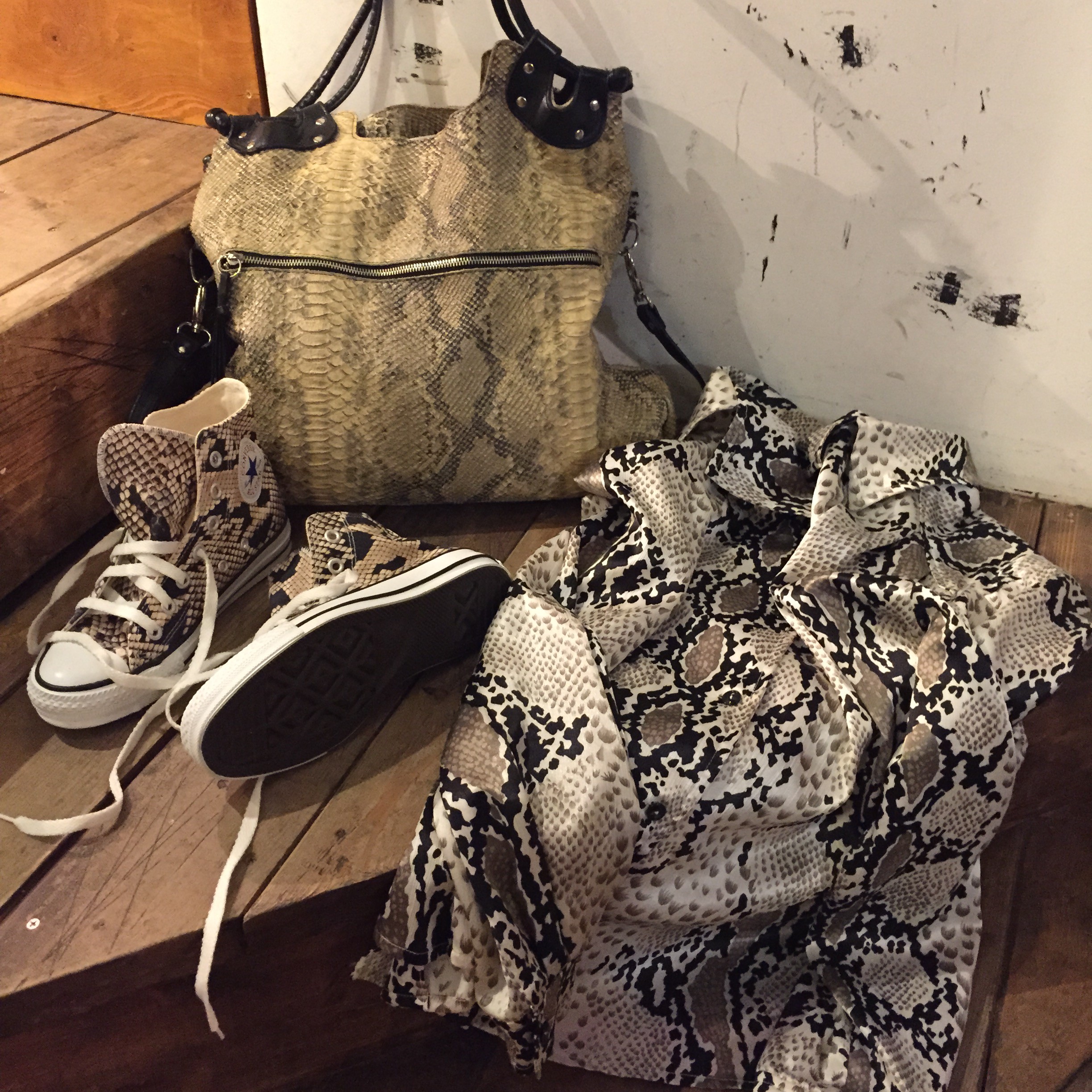 女性らしさと強さを兼ね備えたパイソン柄を取り入れてスタイリングしてみてね