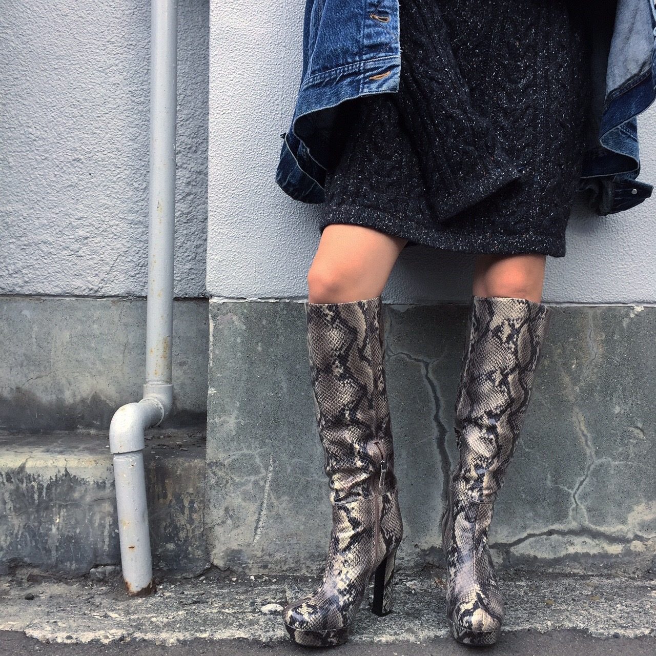 パイソン柄のブーツは、とにかくクールに履いてほしい