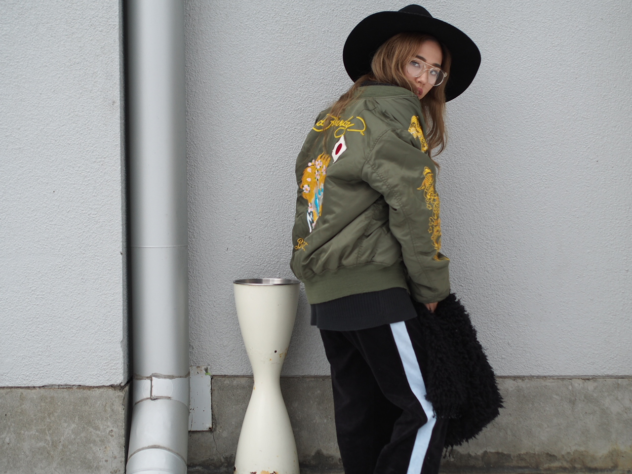 「Ed Hardy」のMA-1をメインにスタイリングしました