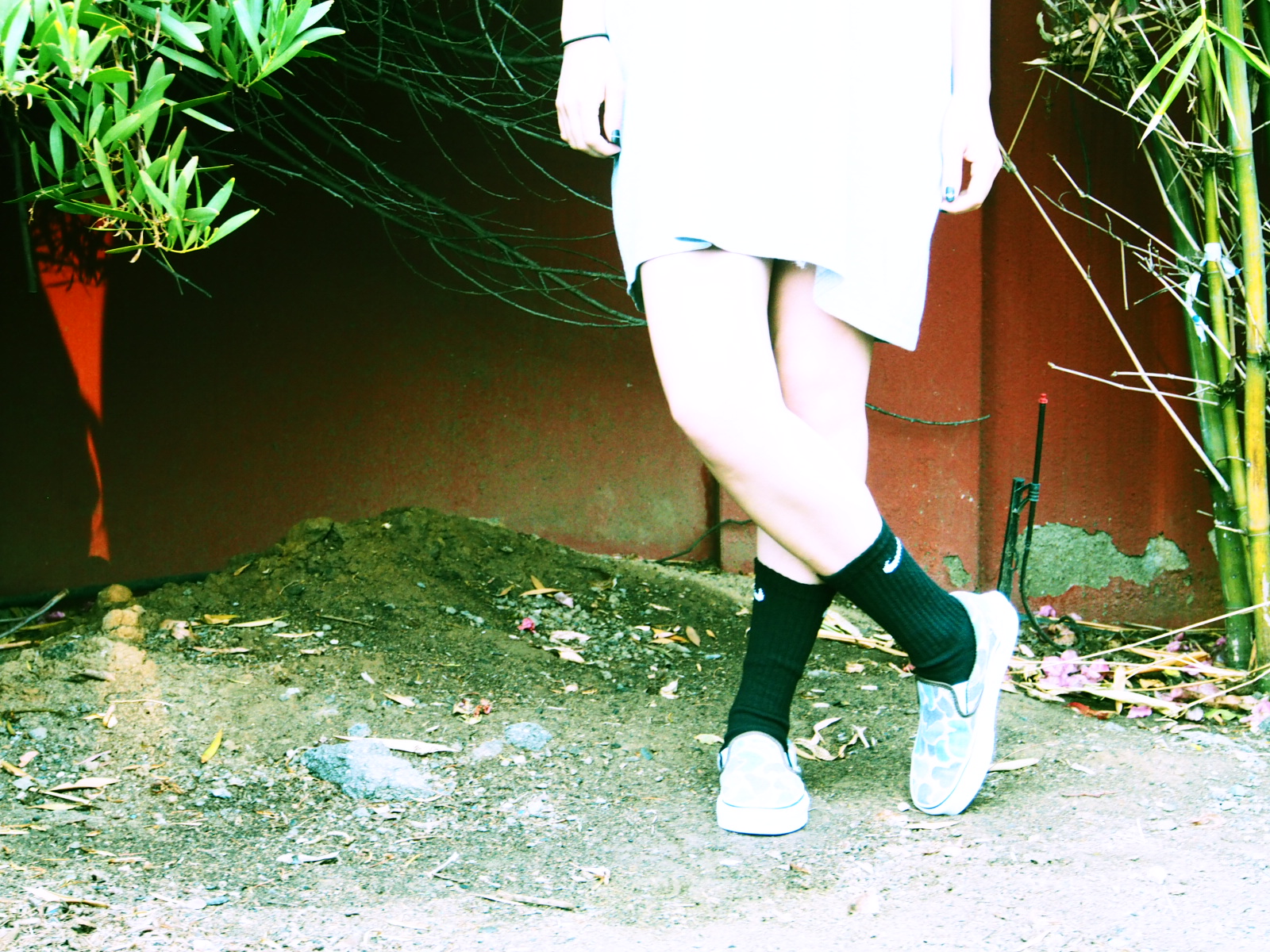 Tシャツ一枚にスニーカー