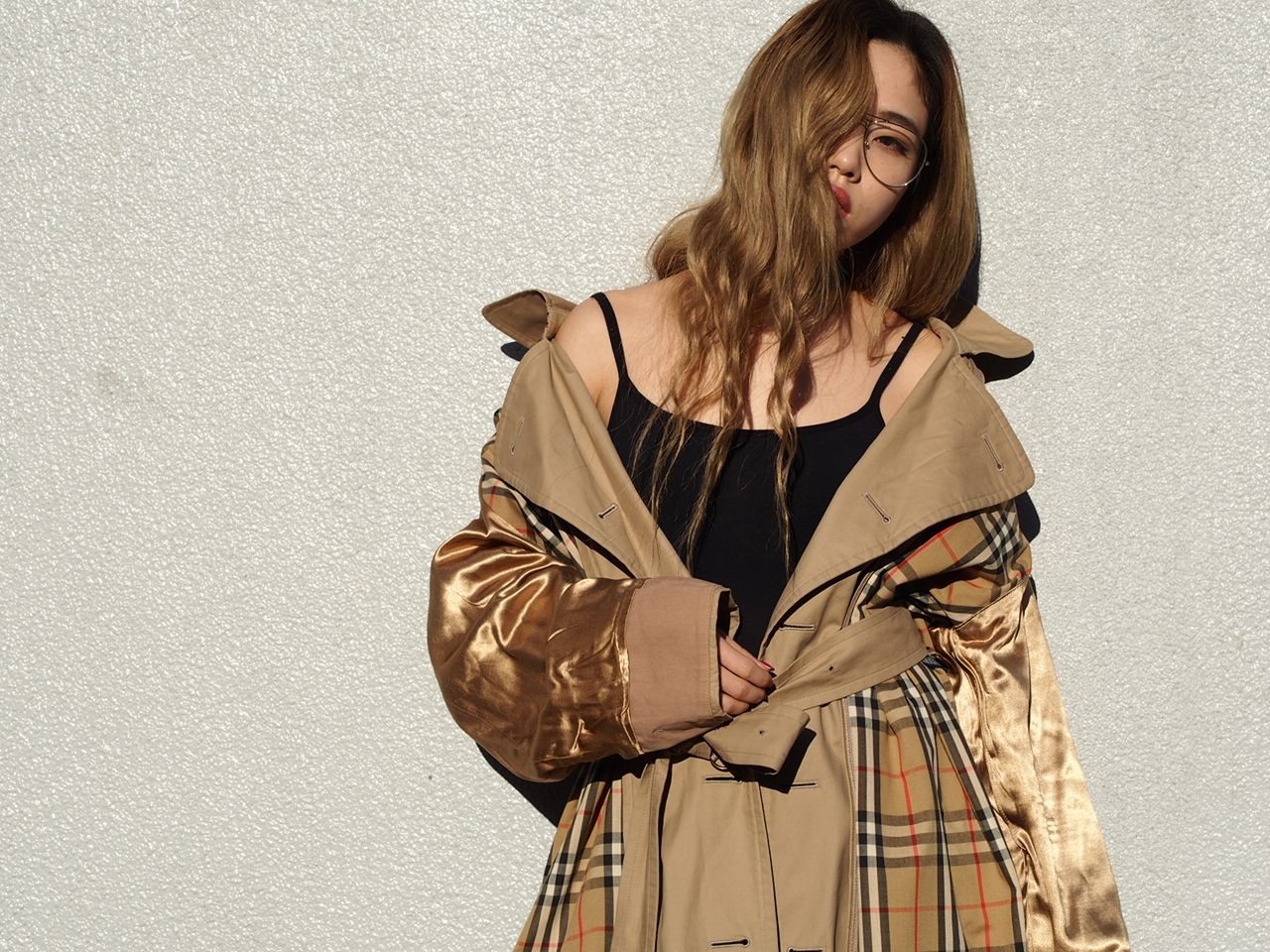 トレンチコートを裏返してスタイリングしました!