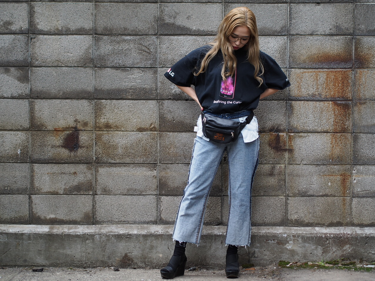 今回はLG(アメリカでメジャーな携帯会社)のTシャツでスタイリングしました。