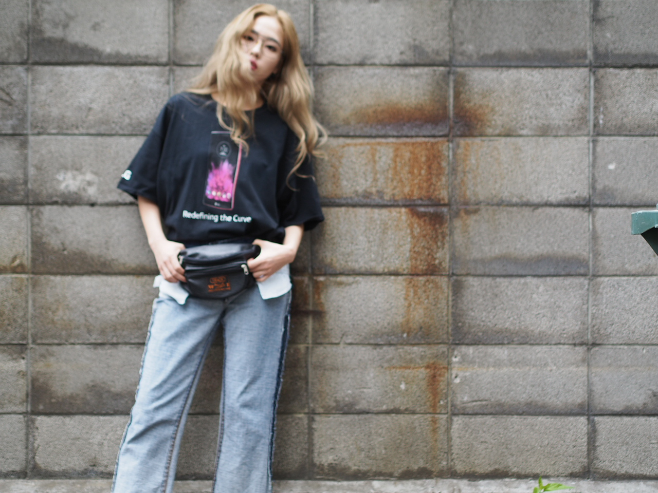 シンプルに、シュールなTシャツとデニムのスタイルにしました。