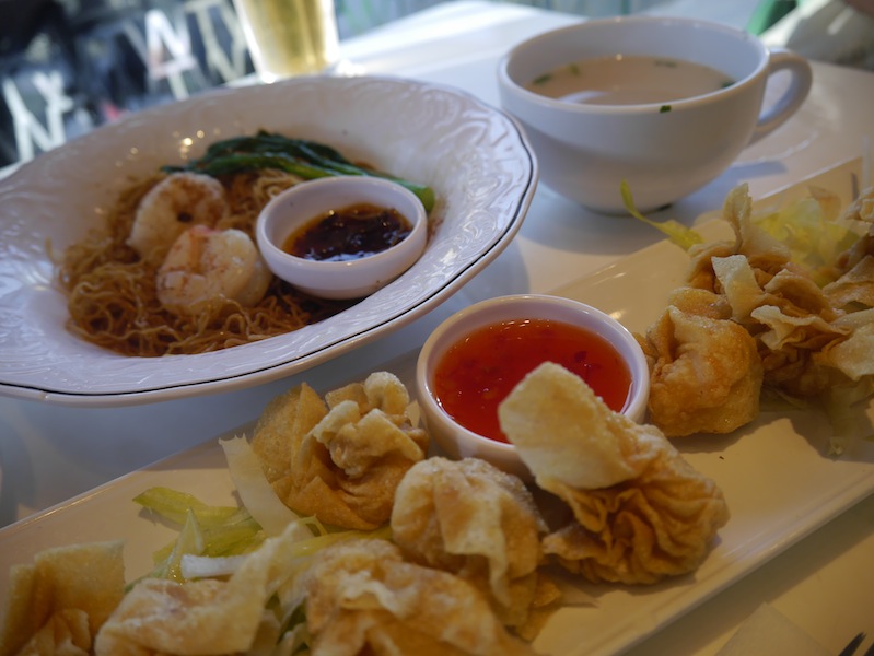 ▼Peakのレストランで中華堪能。エビ入り揚げワンタンに、XO醤油麺!