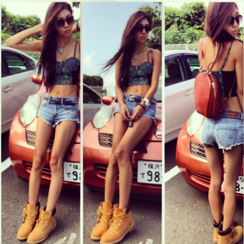 ま、りさは「下着ですか?」ってくらい短いブラジャーみたいなビスチェにパンツのように面積の小さいショーパンをはくような人なのですが(笑)