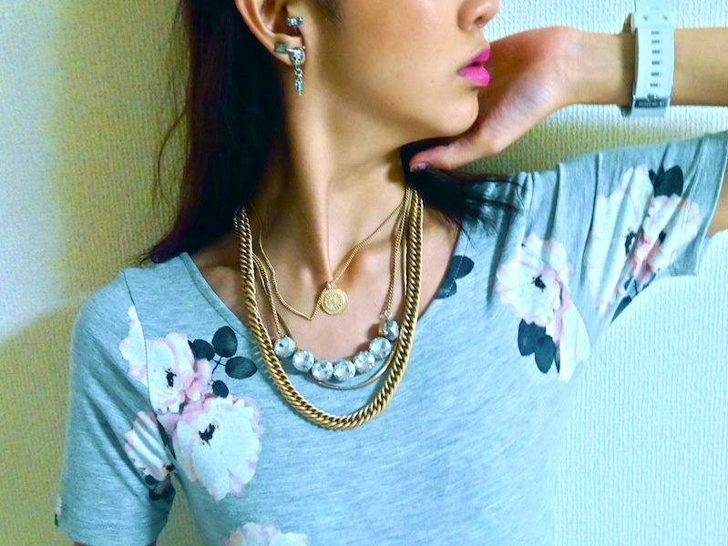 The necklace is actually 4-in-1. It’s super easy in mornings because you don’t even have to think about how to combine necklaces together- it’s already perfectly set for you;) I bought this for 200 yen. I love gold accessories, they look lovely with tanned skin.