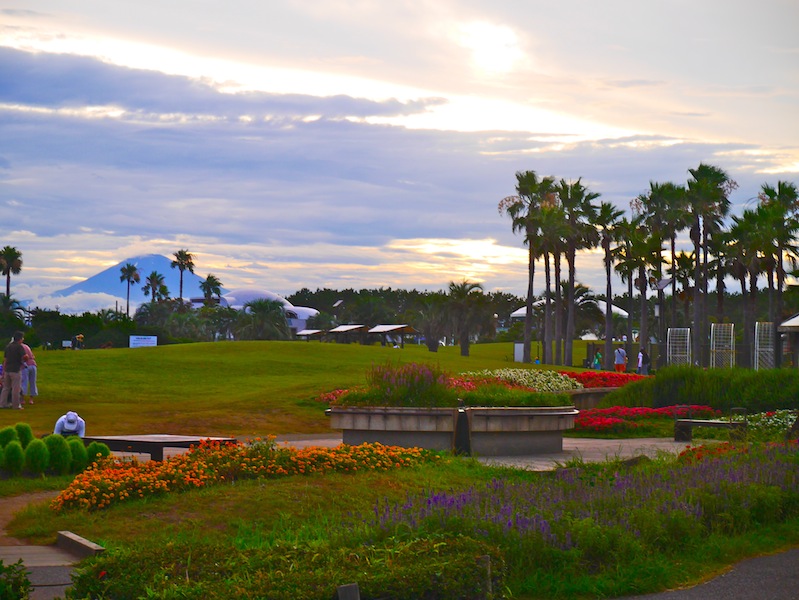 毎年恒例で辻堂海浜公園にはくるんだけど、足下を見れば色鮮やかなお花と子供が走り回る緑の芝生、遠くを見れば富士山とヤシの木が重なって、本当に素敵な公園なの。