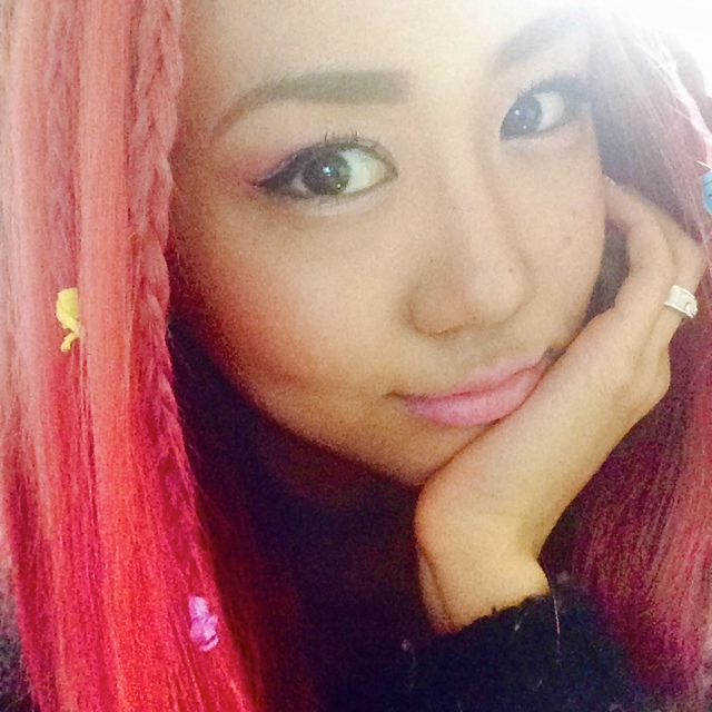 ピンクのシャドーって、結構目がぼけちゃうというか・・・なんか、腫れてる??って感じになりがちなんだけど、シャドーをアイラインみたいに少し上につりあげて塗って行くと、シャープなイメージになるよ。