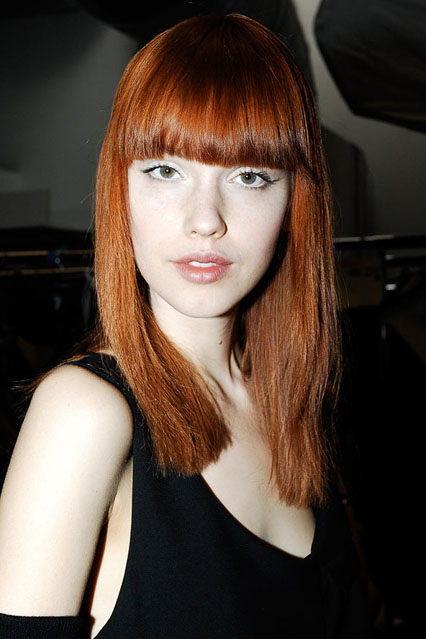 重めバング×赤髪がかなりクラシックな秋冬ヘアスタイル。