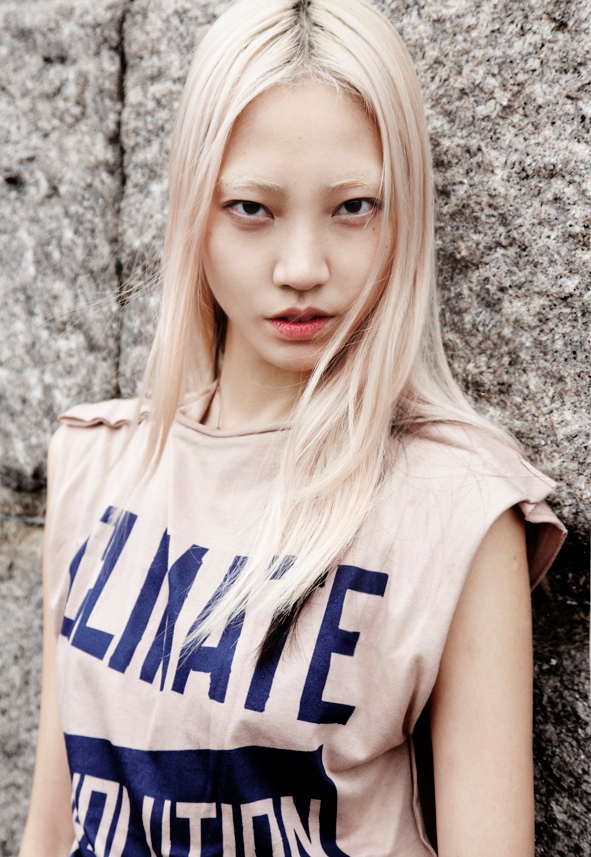 Born in March 26, 1989. She is Korean. She was scouted while shopping, and since then has been the top Asian model. She has modeled for Armani, Vivienne Westwood, etc., and also was the campaign model for CHANEL. Her signature look, the platinum gold hair with the typical single-lid Asian cool face is so attractive and is loved by the industry.