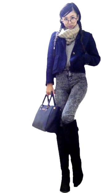 It’s freezing cold in japan already, so I decided to go with the warm, long denim pants this month. The navy colored jacket I’m wearing is from GAP and it’s my favorite, and i paired that with my new babe, Michael Kors’ navy colored bag. I decided to wear a grey knit and tucked it in to the denim, just to show off my pretty high wasted bit. Choose a thinner knit when you wear high waste bottoms because you really don’t want to hide the best part. I also recommend the boots-in style, since the mix of skinny denims and boots make your legs look super long;)