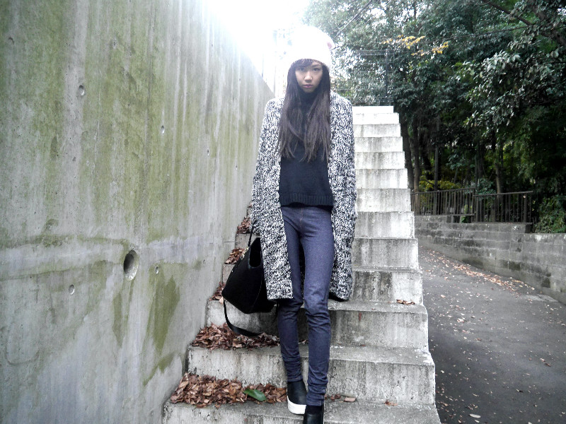 このピンクのふわふわビーニーもこないだH&Mにいったときにゲットしたんだ。