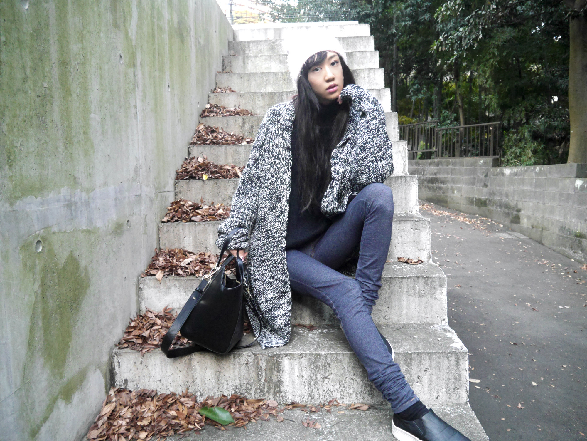#OOTDQUEENスナップバトル4つ目の更新!今回は厚手のニットカーディガンをチョイス。