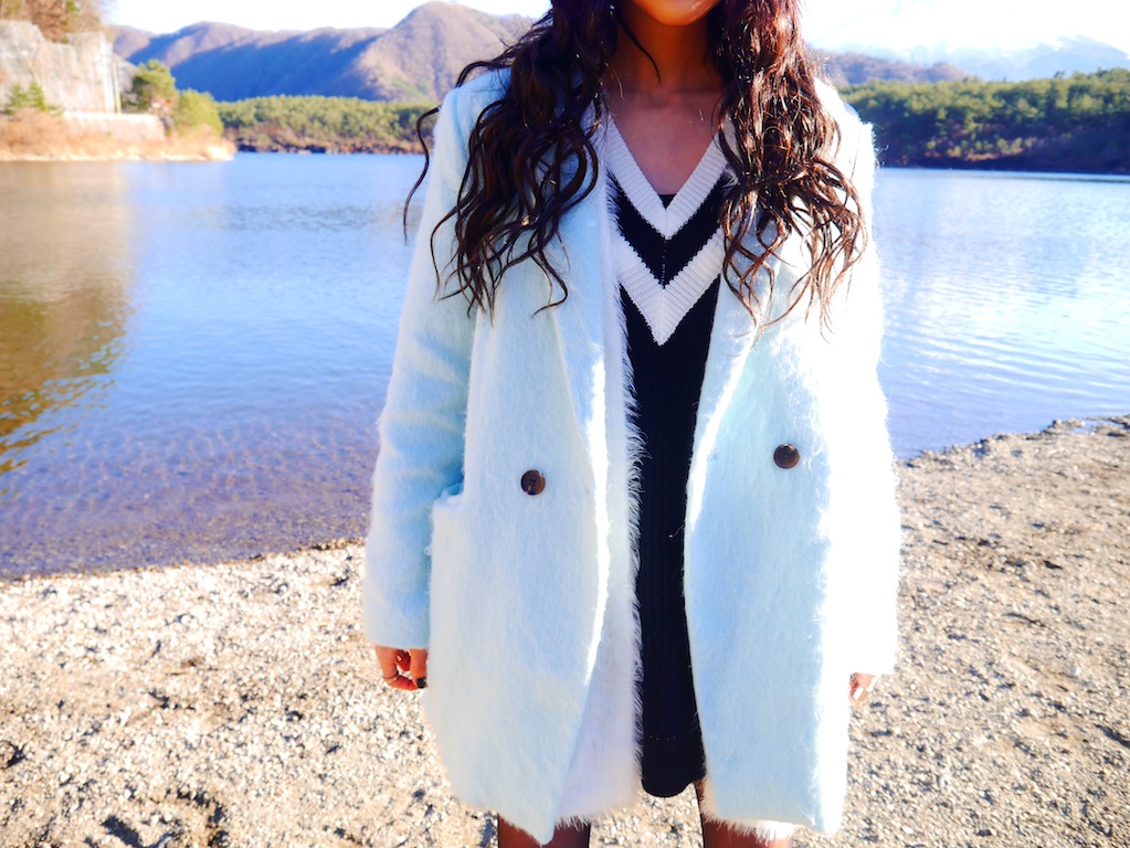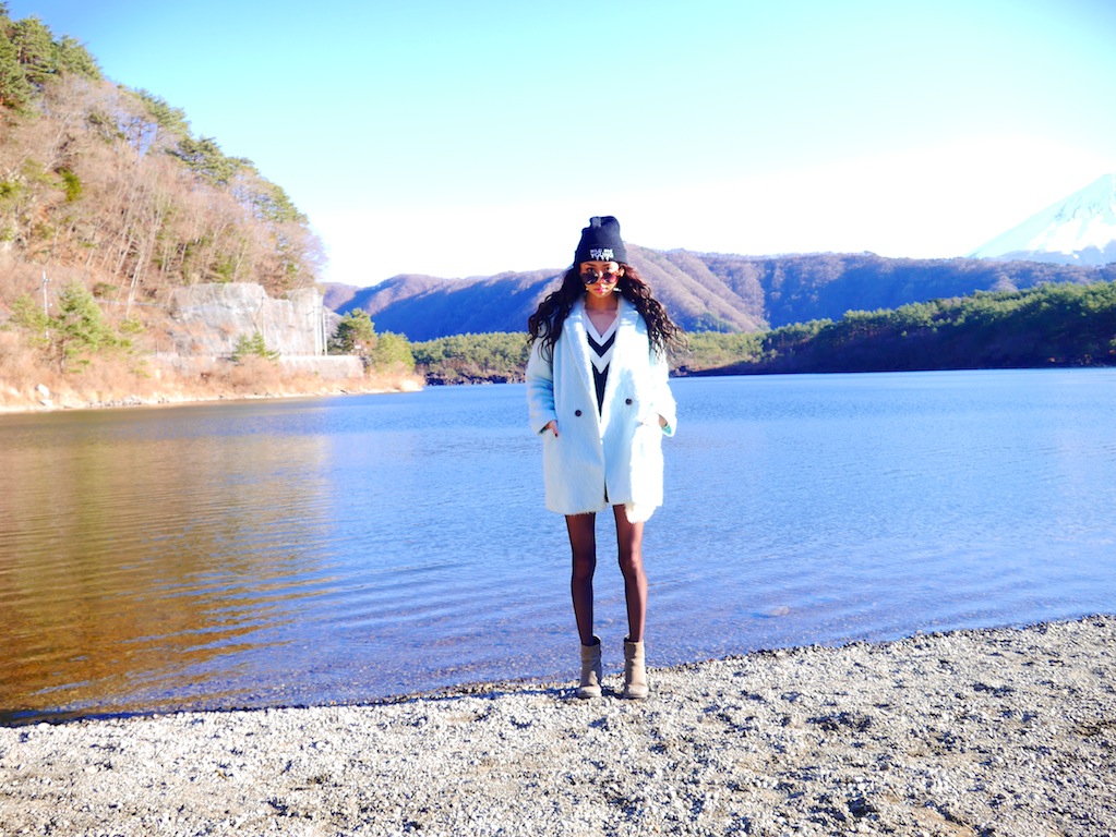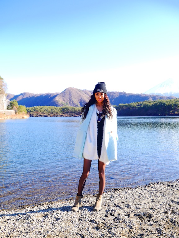 My winter vacation has begun, and I could not stay at home so I decided to visit Yamanashi prefecture for the first time! Because I lived abroad for more than 10 years, I still haven’t been to most of the 48 prefectures in Japan. I loved this place! The lakes and Mt.Fuji were DIVINE. BREATHTAKING. My ootd photos turned out so beautiful, these are totally my favs!