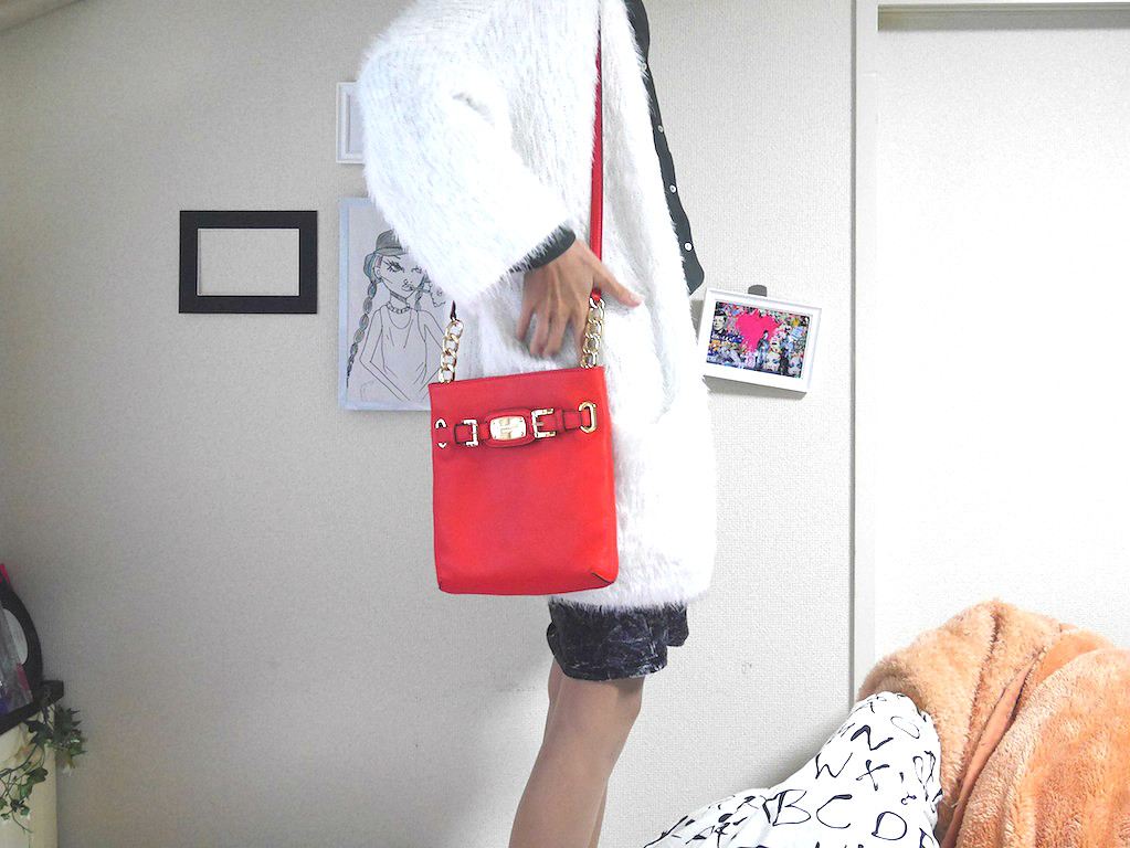 赤いバッグをほかに持っていなかったし、なんといってもゴールドチェーン部分とゴールドのプレートが派手なのに上品で好き。