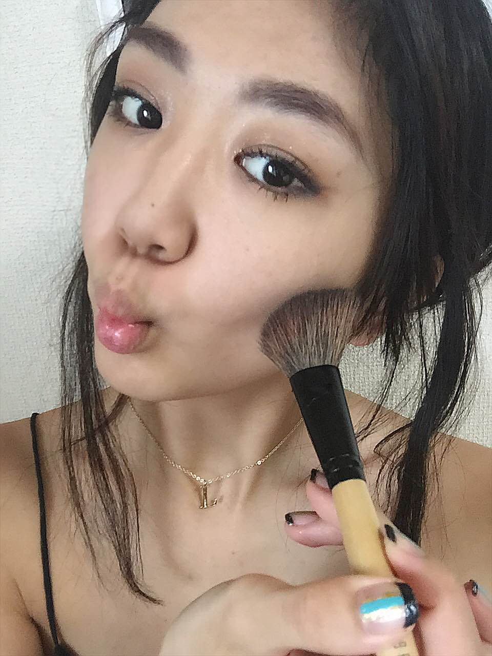 ▼こんな感じで魚顔をして頬骨のしたのくぼみにがっつり塗ってる。丸顔の人はこれやるだけで細長く見えるよ!もう頬がこけてる恵まれてる諸君もこのステップはやるべしだけど広めに薄めに、って感じで塗るほうがいいかな。りさみたいな丸顔さんはどっちかっていうと濃く、細く太めの線を描く感じ!でもちゃんとぼかすのは忘れないでねw