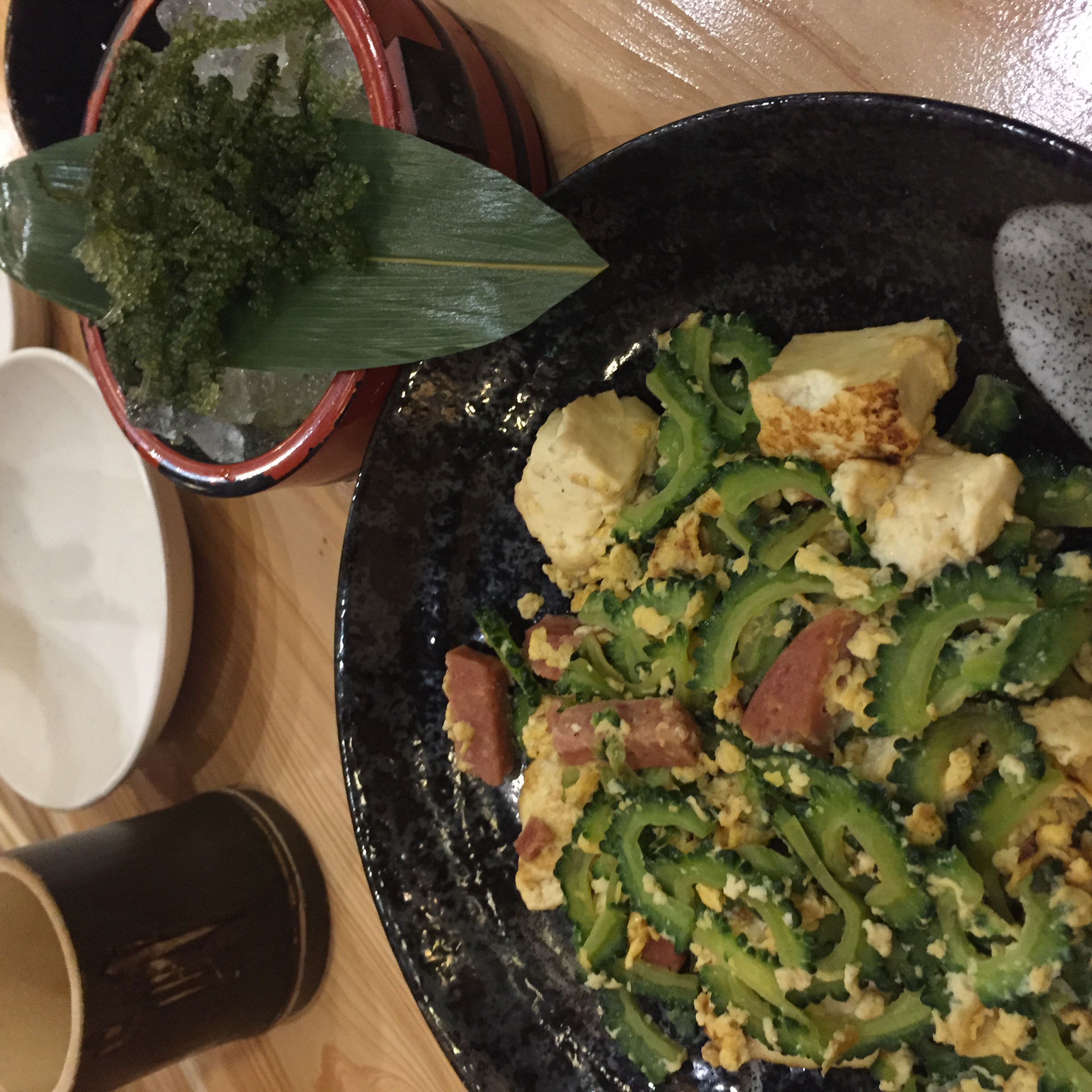 国際通りのお店は観光客向けなものが多いから、どこ入っても大抵ゴーヤーチャンプルーと海ぶどうはある!!ちょっと今回入ったお店の名前忘れちゃったけど、本当に適当に入った感じ。(笑)
