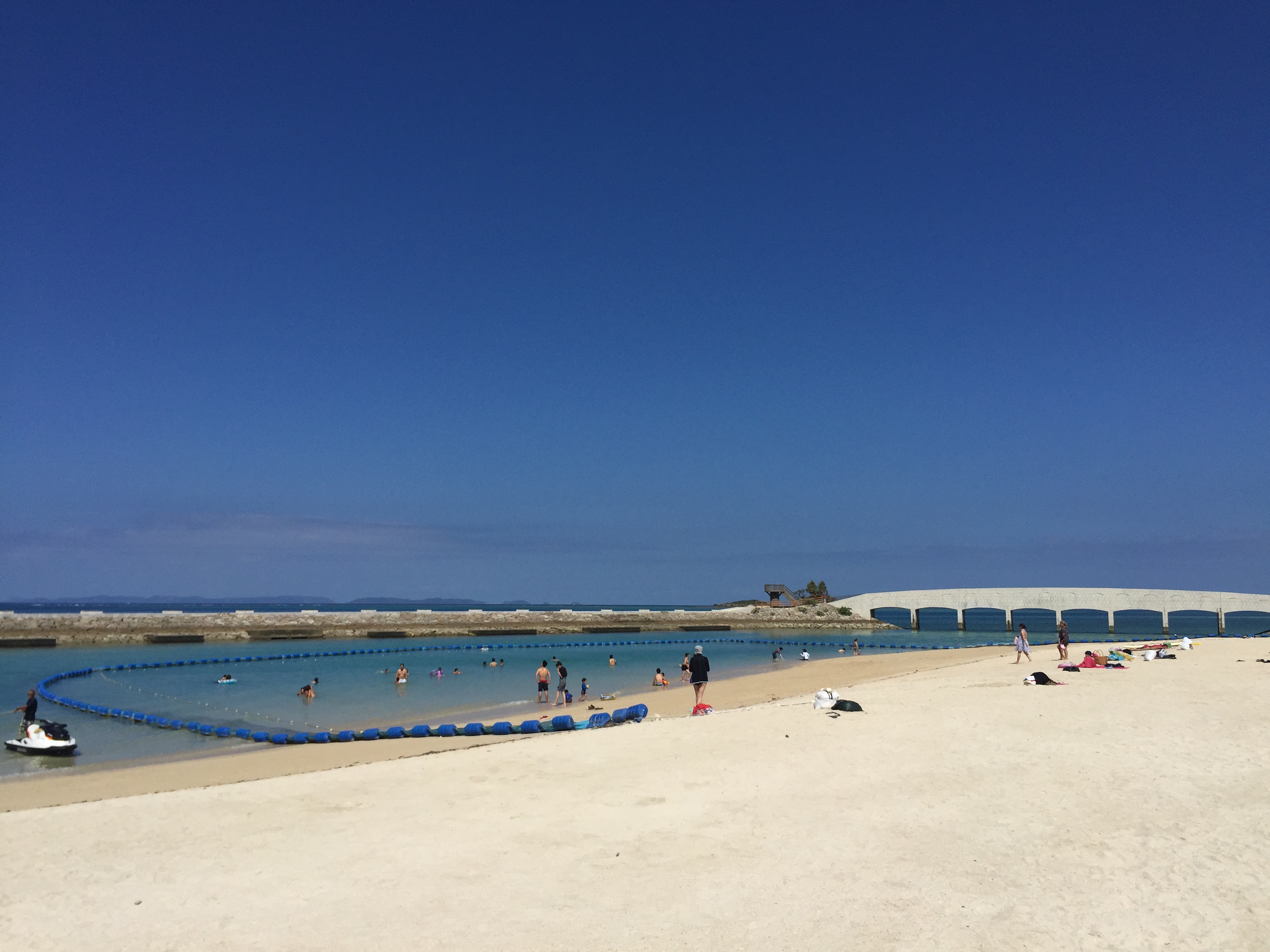 美々ビーチは透明度も高いし、橋があってそこまで歩いて上から景色を眺めるのもよし。