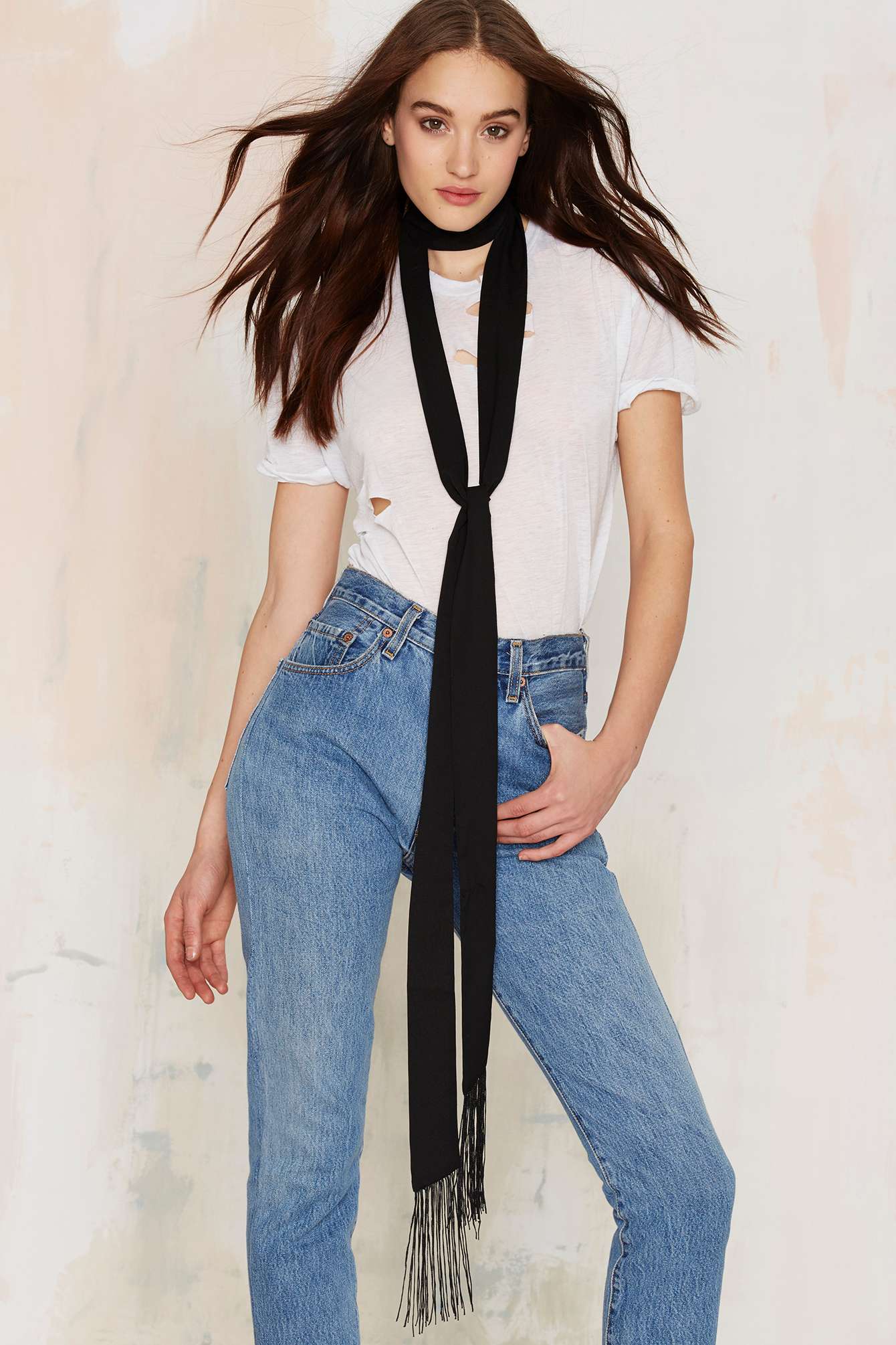 めげずに「thin scarves」「thick choker」「trending neck thingy」などと検索しまくると、どうやらnastygalがいち早くこの細いスカーフを仕入れている。