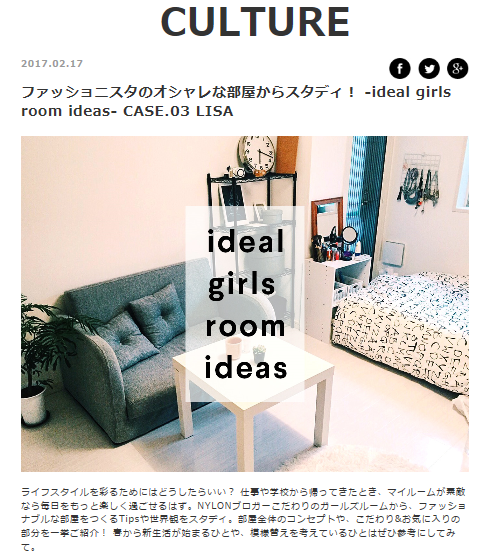 あ、そういえばりさのお部屋がNYLON.JPで特集されてるらしいのでみてみてね。あんまりインテリアフォーカスの記事ではないけど!