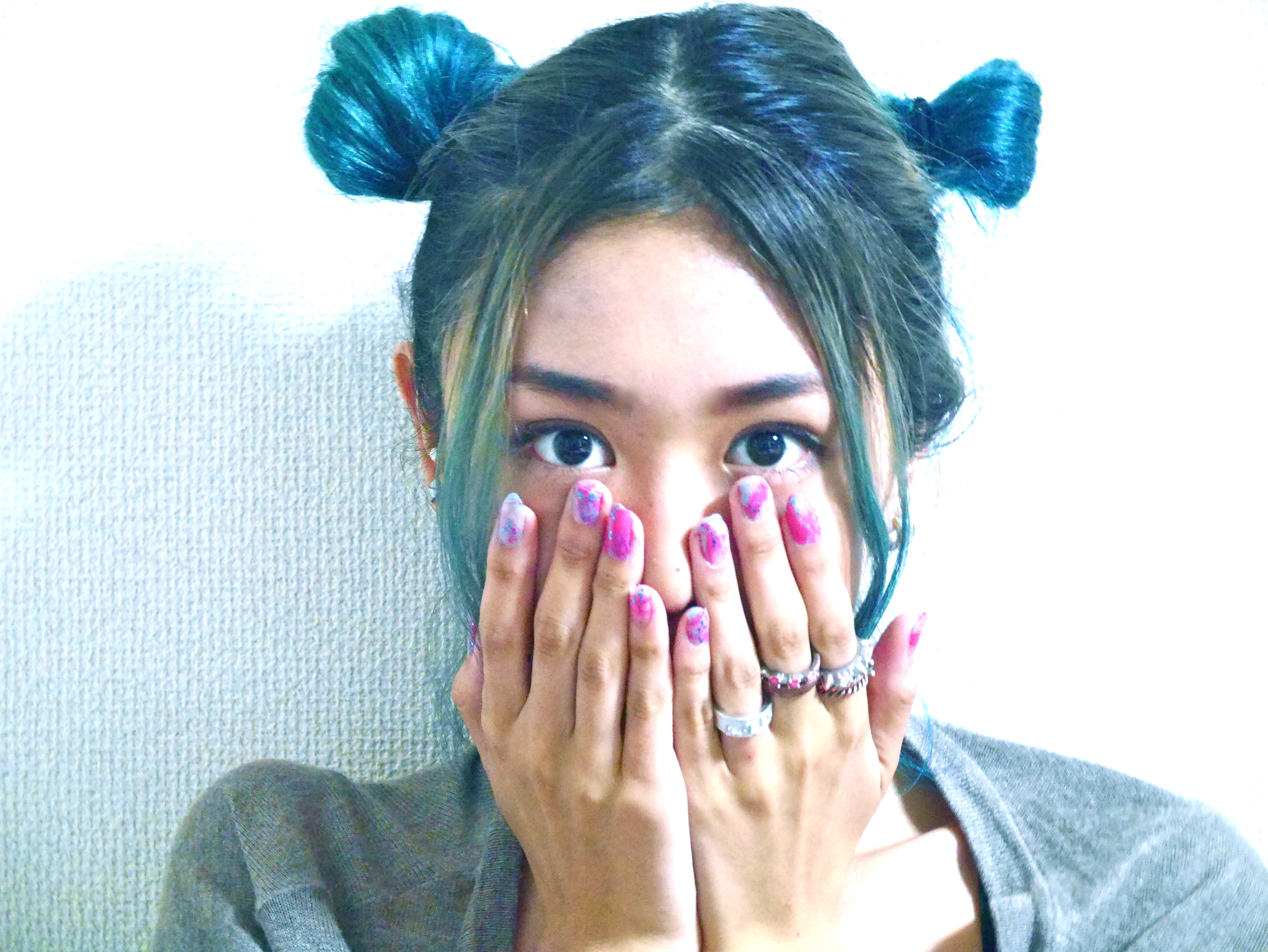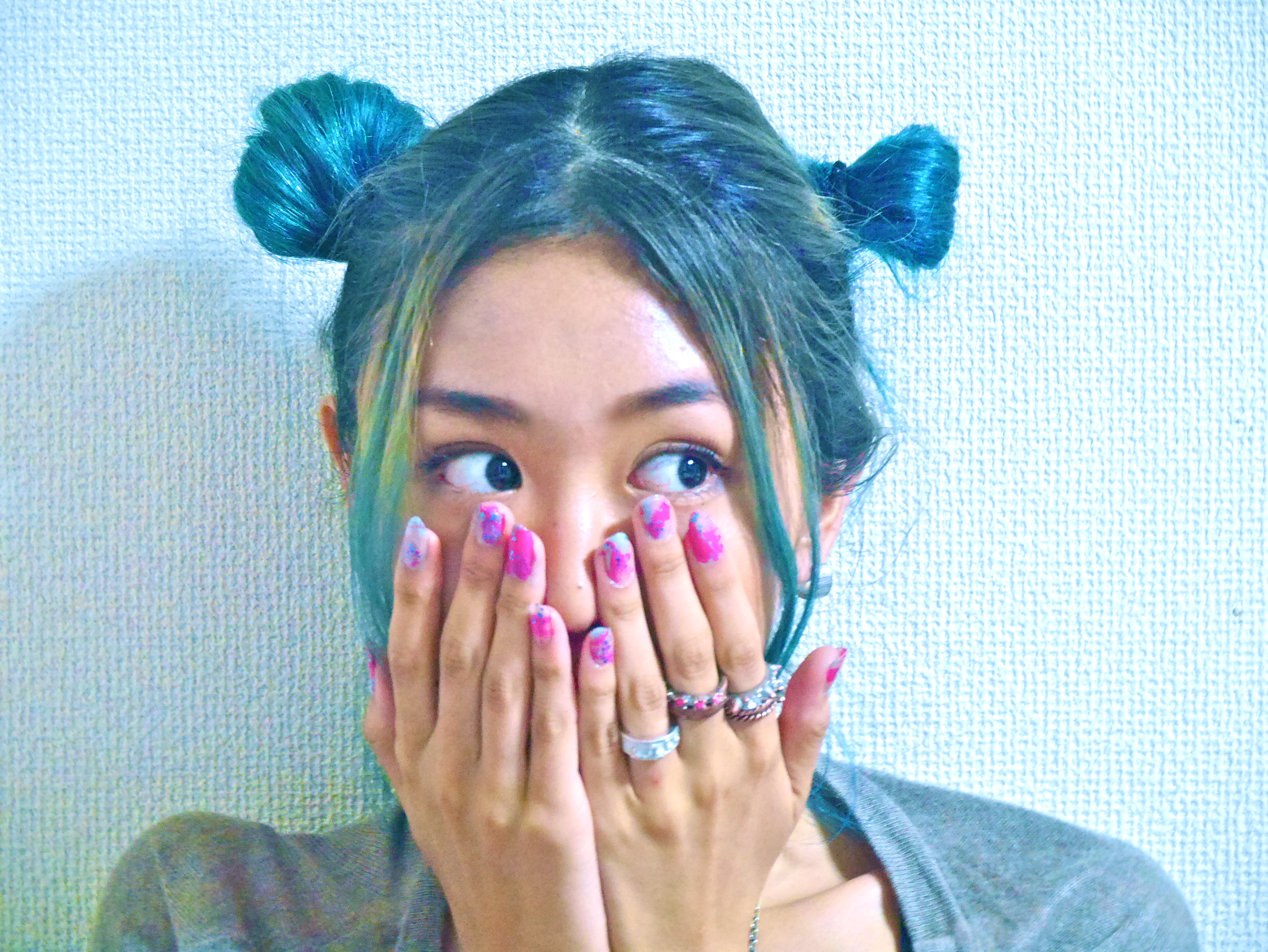 りさはその上にちょっとだけブルーのラメマニキュアを塗ってポップにしたよ。♪
