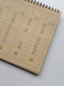 下の色付き☺︎は達成出来た日は黄色、あまり達成出来なかった日は青色で分かりやすくしました。