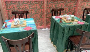 ピンクとグリーンが基調の異国情緒溢れる内装は店舗を再現されたもの。