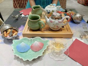 台湾茶が入っていた茶器はヨーロッパの物だそうで食器や調度品などは国や文化をミックスすることで異国からやってきた漂流品をイメージされているそうです。