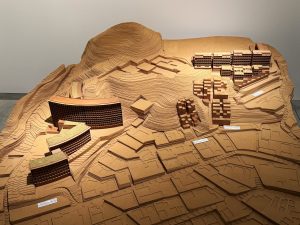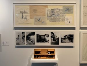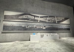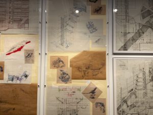 安藤氏のキャリアを一望出来る「挑戦の軌跡」エリアでは、約60件もの建築プロジェクトや、230点余りの模型やスケッチ、ドローイングなどの貴重な資料が数多く並びます。