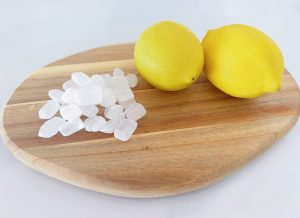 容器に合わせた氷砂糖とレモンを用意します。