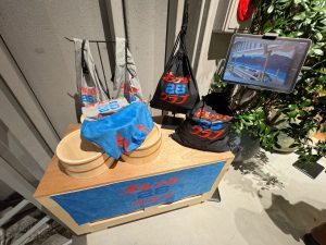 グラフィックデザイナー・美山有氏が手掛けられた京都の伝統的なモチーフとしたストアロゴが使用されたナップサックやグラス、ソックス、また1615年創業の京都老舗手拭い専門店「永楽屋」謹製の小風呂敷など京都店でしか手に入らない限定アイテムが多数展開されています。