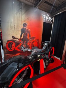 SFアクション映画「TRON:ARES」の劇中で登場するバイク”ライトサイクル”の実物大の展示。