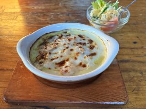 この時期にぴったりの熱々のドリアはとてもクリーミー。ドライカレーのしっかりとした味付けと見事にマッチしており、あまりの美味しさに思わず笑みが溢れてしまいました。