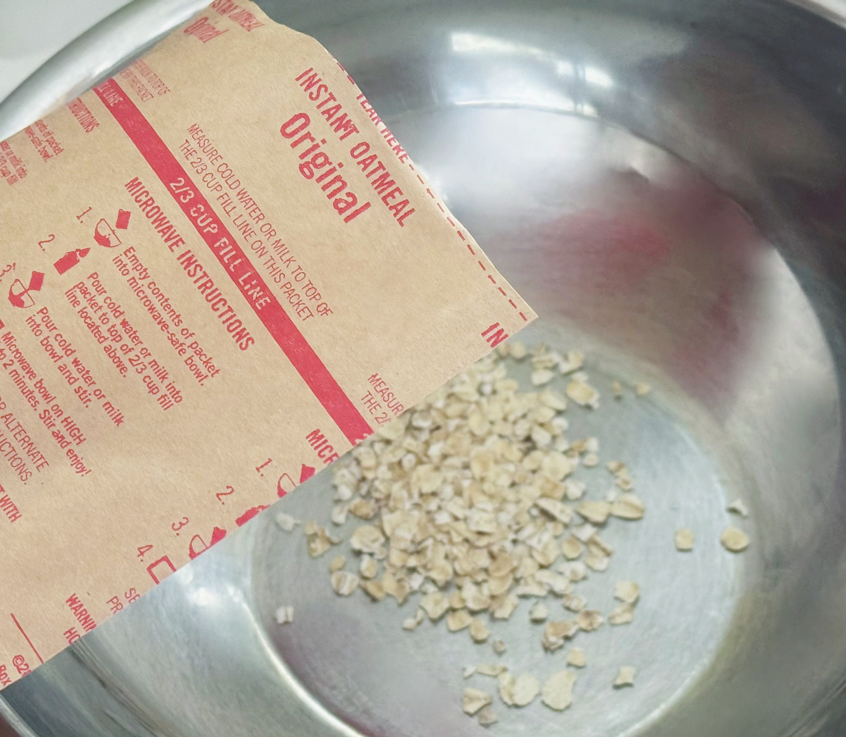 オートミール2袋をボウルに入れて、牛乳に約10分程浸します。