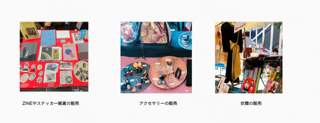 ZINEやハンドメイド作品、アートブックなどが販売することができます。作品を通して自分の伝えたいことをセッションできる新しいコミュニティの場でもあります。参加した人通しで仲良くなって、一緒にコラボする機会などができた!などという声もいただいています^^