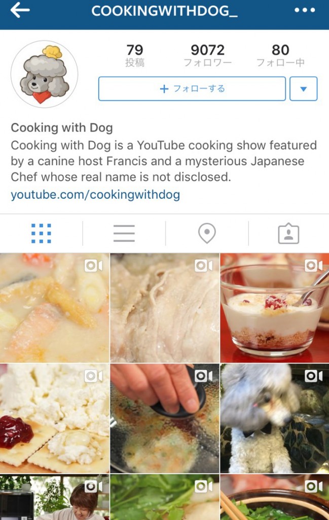 ユーチューブに100万人以上の登録者を持つクッキングチャンネルの宣伝ようのインスタです。日本人にはあまり知られていないようだけれども、愛犬のフランシスがナレーションのもと、THE日本人お母さんがジャパンカルチャー料理を紹介していく、海外では有名なユーチューバーです。時折、お母さんや愛犬の近状もアップされているのが個人的にツボです。