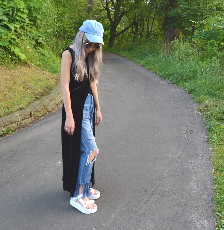 ベロア素材でもTシャツやノースリーブ、ボトムだと