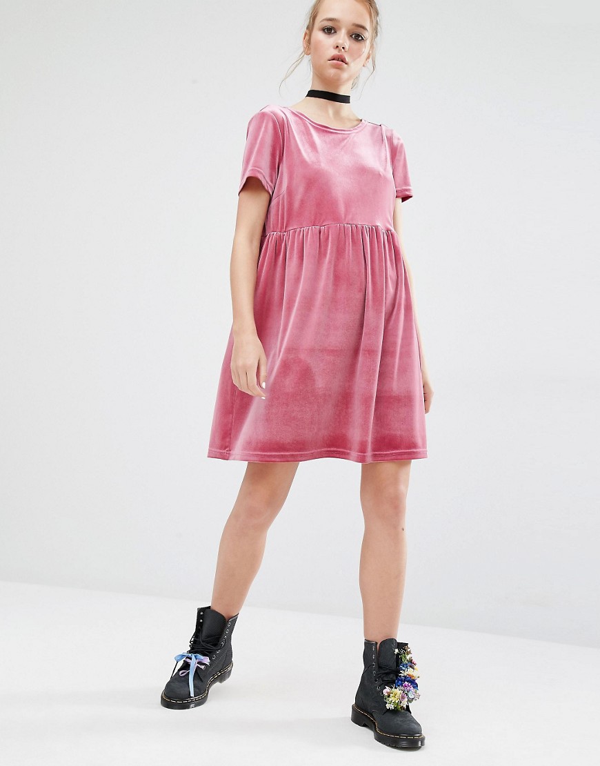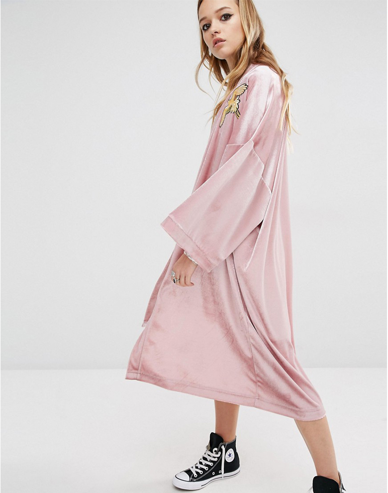 重い印象になりがちなベロアのガウンもピンクなら今時期でも爽やかです。