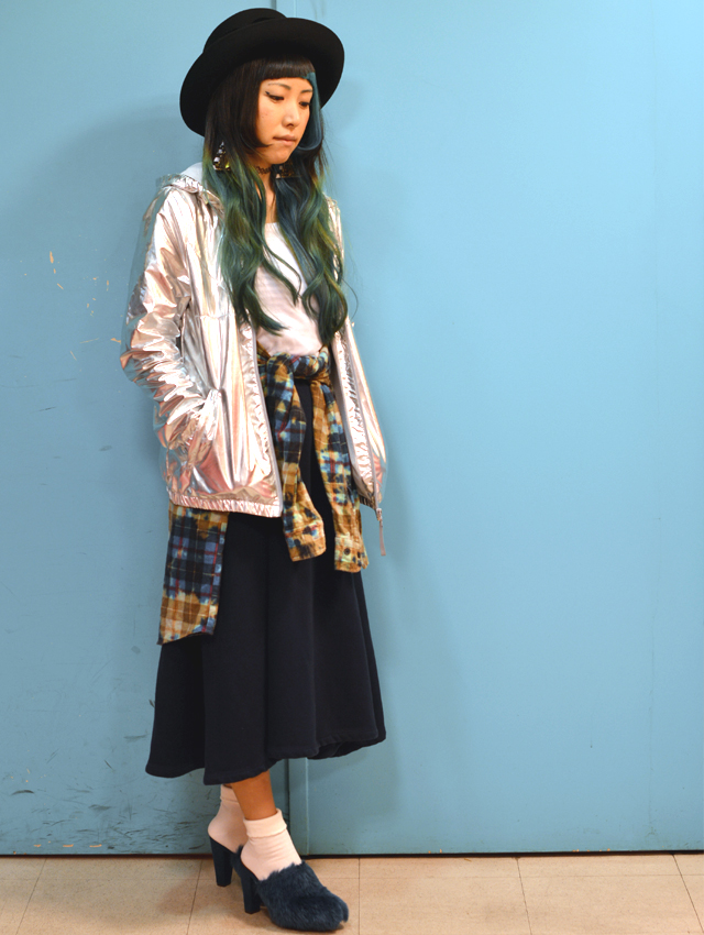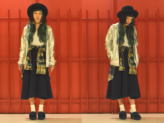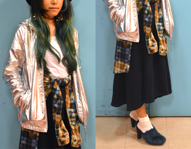 2回目はadidas originalsのシルバーのメタリックジャケットと