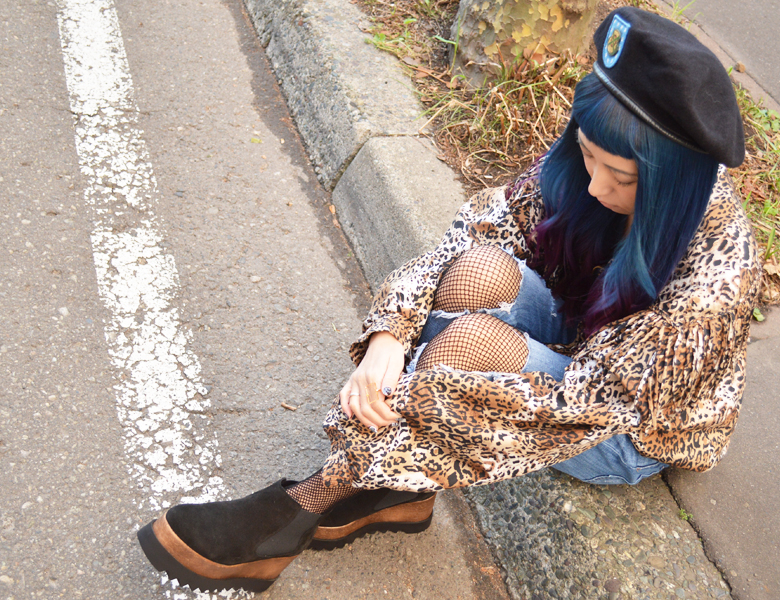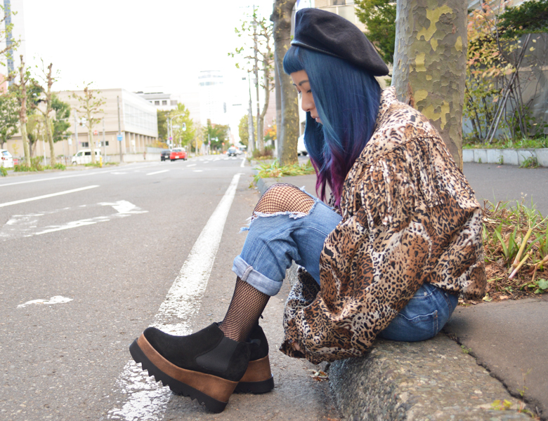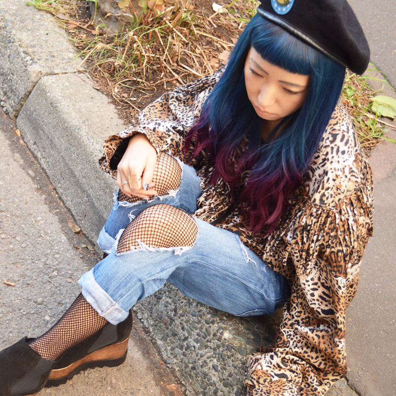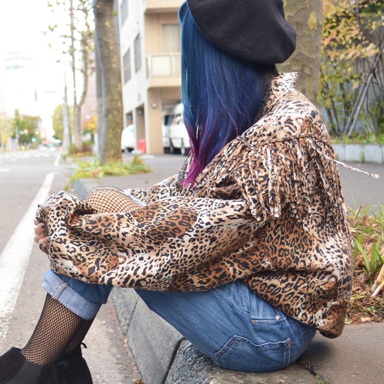 この日のスタイルは先日の東京弾丸の時に高円寺で見つけた古着のレオパードジャケットがお気に入り。