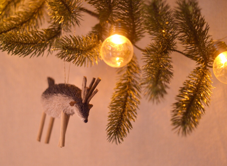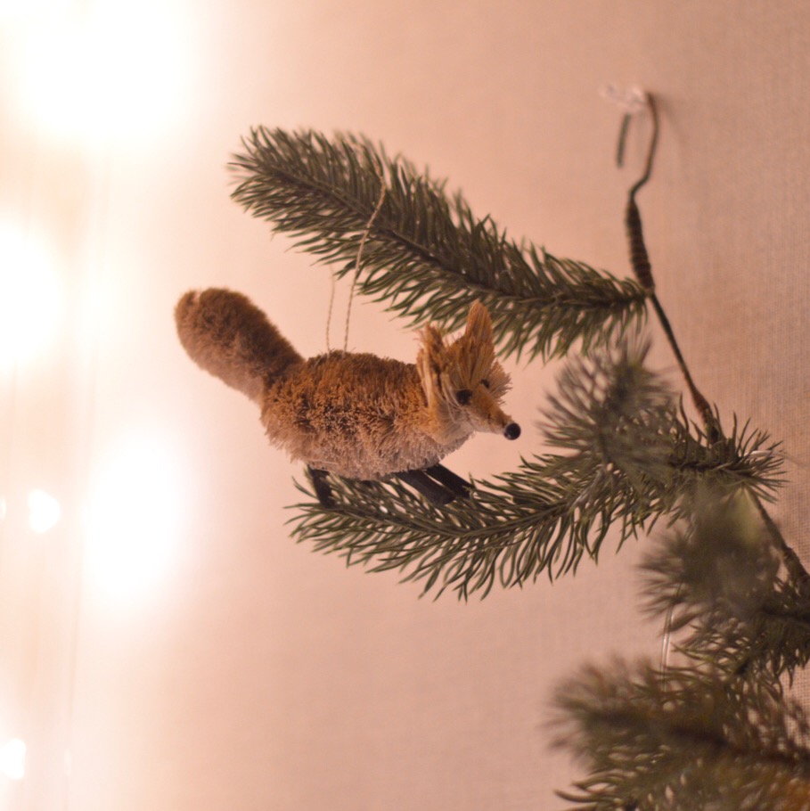 オーナメントは天然の素材で出来た動物たちをセレクト。