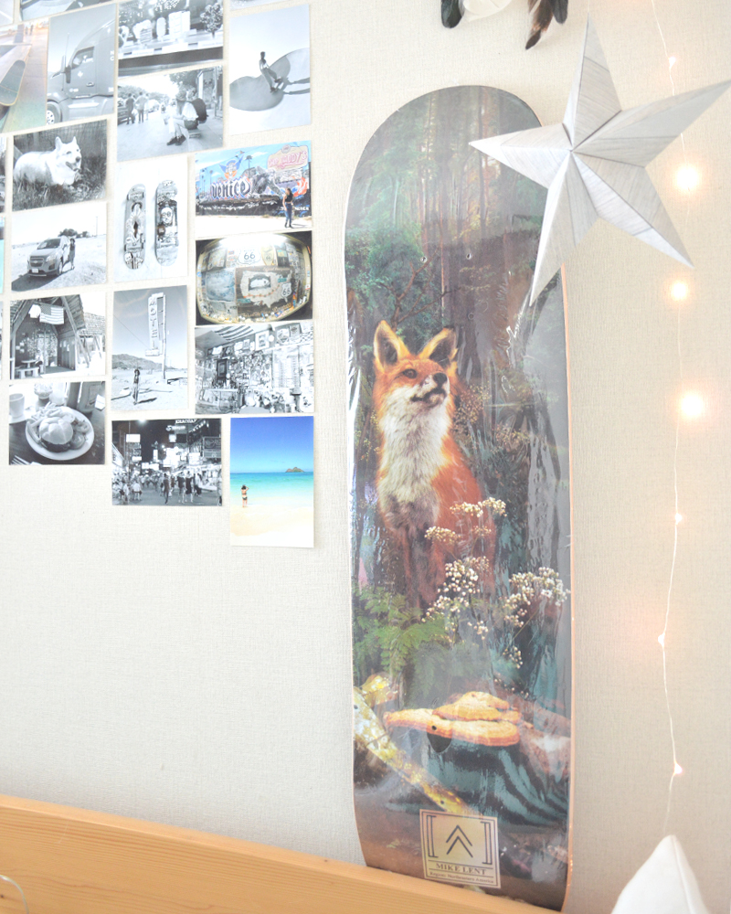 今乗っている板が寿命を迎えて、次に乗る用だったり出番が来るまでの間は部屋に飾ってあるスケートボード