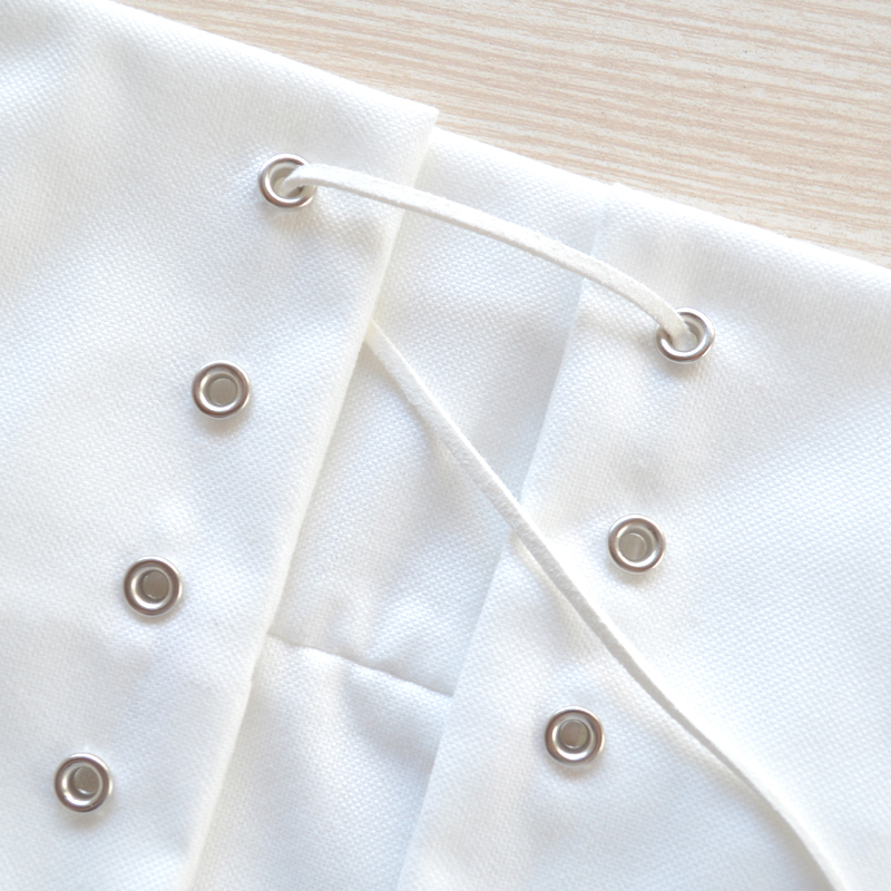 全て、ハトメを取り付け終わったらいよいよ紐通し。